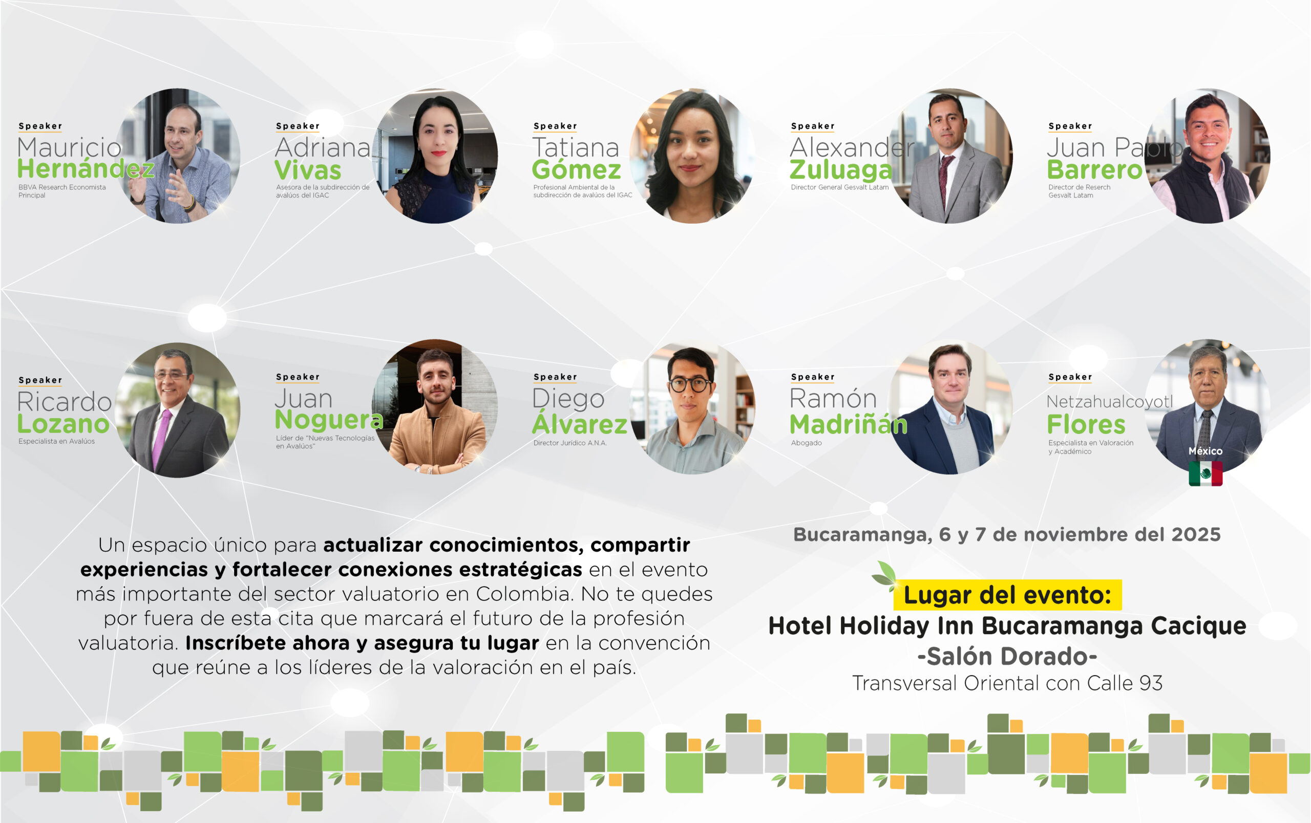 Bajo el lema Sostenibilidad y Precisión: El Futuro de la Valoración, reuniremos a los principales expertos del sector para analizar tendencias, compartir conocimientos y fortalecer el rol del avaluador en el desarrollo del país. A través de conferencias magistrales, paneles de discusión y espacios de interacción, esta será una oportunidad única para actualizarse y generar conexiones estratégicas.